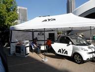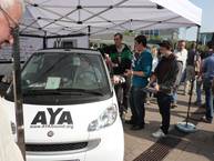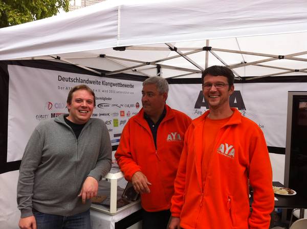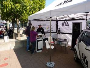 Am 21.9. war bei herrlichstem Sonnenschein die Lauen im und ums AYA Zelt prima. Etliche Besucher von jung bis alt zeigten Interesse und auch die weibliche Fraktion wollte an diesem Tag bei überdurchschnittlich langen Hörsessions mehr erfahren als der "Otto-Normal-Hörer". Oki, Achim und Thomas wechselten sich locker ab und erklärten dann den jeweils draussen Gebliebenen (bei Paaren z.B.) schoneinmal um was es bei der AYA geht. Auch unser Jens, dem die AYA soviel zu verdanken hat schaute wie alle Tage regelmässig vorbei. Hier und da kamen sogar AYA Teilnehmer und weitere Bekannte vorbei und staunten nicht schlecht über das Engagement des "Hörsportvereins". Ab und an kam es auch einmal zu lustigen Missverständnissen denn ein Besucher wollte wisen wie weit man mit diesen "Elektro Smart" fahren könne mit einer Ladung (er sah die Kabel des Netzteils aus dem Kofferraum hängen). Da wurde schon auf beiden Seiten geschmunzelt als die Aufklärung erfolgte. Ausserdem wollten einige Leute auch einmal in einem Smart sitzen, weil bei den Smarts an sich die Autos alle wohl abgeschlossen waren. Auch hier konnte die AYA helfen und es gab obendrein noch angenehme Musikberieselung beim Probesitzen.