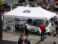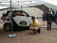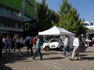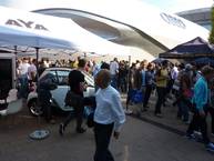 Der 22.9. startete für die AYA auf der IAA mit etwas höheren Temperaturen am Morgen. Aber der Tagesdurchschnitt war geringer. Jedoch hatte das keinerlei Auswirkungen auf die Besucherzahlen. Noch voller als am Mittwoch war es und zum AYA Team stiess Martin hinzu der auch schon einige Interessierte Besucher mit Infos versorgt hat. Auch heute wieder die obligatorischen Fragen was das "Elektro Auto" den nun kostet. Erneut kamen Interessierte die in der Scene schon aktiv sind und sogar schon auf Events waren, z.B. Mammut Üüüühh!!! und Egmating.