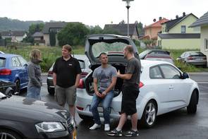 Dank des Brieden Verlags mangelte es auch nicht an Regenschirmen, die leider phasenweise vonnöten waren, da der Wettergott dieses Mal nicht ganz so mitspielen wollte. Das mitunter nasskalte Wetter sorgte jedoch für angenehme Temperaturen in den Wettbewerbsautos und ersparte den Juroren so die während der Saison üblichen Schweißausbrüche. Der Stimmung unter den Teilnehmern tat das durchwachsene Wetter jedoch keinerlei Abbruch, und so wurde an beiden Tagen kräftig gefachsimpelt und den Anlagen der Teilnehmer gelauscht.