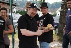 Schutz vor dem Regen bot z.B. wie schon in den Jahren zuvor das BBQ-Zelt von Johnny, der u.a. mit seinen Original American Beef Burgern begeisterte, die nach einhelliger Meinung der Besucher geschmacklich die Angebote der großen Burgerbratereien um Welten schlugen, was sich deutlich an der über viele Stunden nicht enden wollenden Warteschlange zeigte.