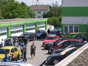 Als Hoffest kann man den inzwischen schon traditionellen Event bei der Car Hifi Zone in Mainz-Kastel bezeichnen, denn die Geschäftsräume befinden sich in einem Gebäudekomplex, der einen großen Innenhof umschließt. Und dieser war wie gewohnt komplett für den AYA Wettbewerb reserviert und natürlich wieder einmal prall mit 42 Teilnehmerfahrzeugen gefüllt.