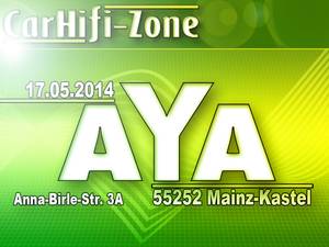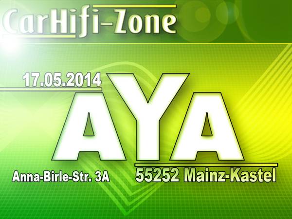 Am 17.5. fand bereits zum 8. Mal ein AYA-Wettbewerb bei der CarHifi-Zone in Mainz-Kastel statt. 47 Teilnehmer und zahlreiche Besucher fanden sich bei sonnigem Wetter ein, um das zweite AYA-Event der Saison zu genießen. Unser Dank geht an das Team der CarHifi-Zone für die Gastfreundschaft und die Bewirtungen mit Kaffee, gekühlten Erfrischungsgetränken und leckerer Currywurst. Ebenfalls anwesend war mit Denis Mlivic von DM Car Design eines unserer Händlermitglieder, zu denen auch die CarHifi-Zone bereits seit 2007 zählt,