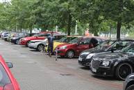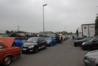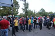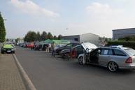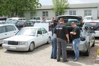Bei bedecktem aber weitgehend trockenem Wetter konnten es die Juroren in den Autos diesmal sehr gut aushalten, als sie die insgesamt 42 Starter bewerteten. Die nebenan gelegene Waschstraße hatte an diesem Morgen wohl den umsatzstärksten Tag im Jahr, viele Teilnehmer nutzten die Gelegenheit, das Auto vor Ort noch einmal säubern zu lassen. Für Verpflegung war den ganzen Tag über gesorgt, Stefan höchstpersönlich betreute den Grill, und bei den Damen in der Garage gab es eine große Auswahl an Salaten sowie für die Kaffeezeit sehr leckeren Torten und Kuchen.