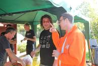 Während es Gutes vom Grill gab und selbstgebackenen Kuchen, konnte man bequem im Schatten sitzen und den traditionellen Car-Hifi-Fünfkampf beobachten, oder noch besser, daran teilnehmen! Es wurde fleißig geschraubt, geworfen, gewickelt, sortiert und gestapelt! Zuletzt konnten diese 3 harten Sportler die begehrten Medaillen ergattern: 1. Carsten Balzer, 2. Matthias Zahn, 3. Natalie Weymar, die es als erste Frau in der Geschichte des 5-Kampfes in die Top 3 schaffte. Glückwunsch!