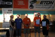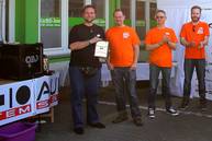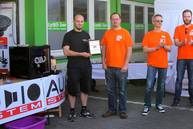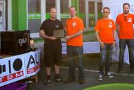 Vor der Siegerehrung übergaben wir unserem langjährigen Fördermitglied Michael Müller (Zapco Exclusive) alias The BIg OKi die Fördermitgliedsplakette 2014. Auch ein neues Händlermitglied, Andreas Heiss von Audiophile CarHifi, erhielt seine Händlerplakette .