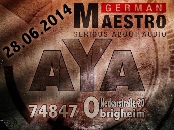 Am 28.6.2014 fand zum 2. Mal die German Maestro AYA in Obrigheim statt. Als eines unserer Fördermitglieder öffnete die Maestro Badenia GmbH ihre Türen und Produktionsräume für die AYA. Oliver Schmidt nahm als Geschäftsführer stellvertretend die Fördermitgliedschaftsplakette entgegen. Bei dicht bewölktem Himmel und leichtem Regen saßen Teilnehmer und Besucher entweder im 'grünen Paradies' unter den Bäumen oder unter den guten Unterstellmöglichkeiten. Oder, nahmen an einer der drei Werksführungen teil, wo die erste bei laufender Produktion statt fand, man konnte also direkt beim fertigen der Lautsprecher und Kopfhörer dabei sein. Oliver Schmidt erklärte sehr viel, eine wirklich informative Führung die tiefe Einblicke in Produkte 'Made in Germany' gab.