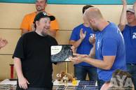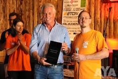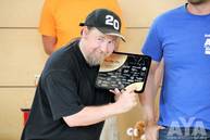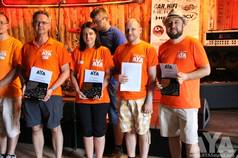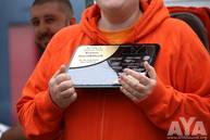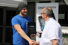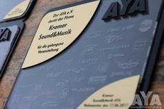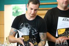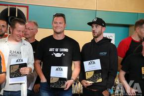 Zu Beginn der Siegerehrung wurde eine Sonderehrung vorgenommen. Dieses Jahr ist ein AYA-Teilnehmer überraschend verstorben und für die hinterbliebenen fünf Kinder und die Witwe wurde eine spontane Spendenaktion im Klangfuzzi-Forum losgetreten. Patrick Klinge, als Koordinator der Aktion, erhielt eine Ehrenplakette in Form eines Ankers verliehen. Zum einen als Ehrung für den Verstorbenen, aber auch als ein Symbol für die Hilfe und den Zusammenhalt, den es in der Carhifi-Szene gibt. Einen großen Dank an alle, egal ob Spender oder nicht, denn ihr seid es, die diese Szene so toll machen!
