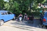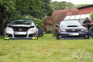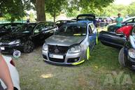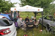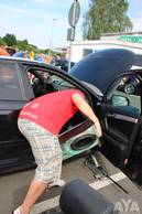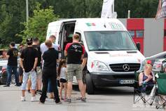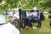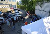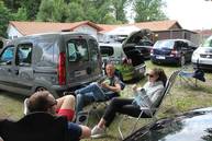 Die Wettervorhersage war übel, eigentlich hatte man sich darauf eingestellt nass zu werden, oder dass Zelte durch die Gegend fliegen. Allerdings war dann das Gegenteil der Fall. Schwitzende Juroren in den Autos, viel Sonnenbrand außerhalb der Autos - tolles Wetter! Die CarHifi-Zone versorgte alle mit Frühstück und Gegrilltem, es war für alles gesorgt. Die Teilnehmer verteilten sich über den ganzen Platz, mal in der Sonne in Campingstühlen, an Biertischen unter Zeltdächern, einige haben ihre Kinder mitgebracht, die dann auf dem Platz gespielt haben. Eine schöne Sommeratmosphäre.