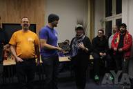 Das Event lief weiter, allerdings stieg die Spannung! Denn so ohne Feedback weiss niemand, wie es vielleicht stehen könnte - das macht das Finale auch besonders! Gegen 20.30 Uhr startete die Siegerehrung, während im Hintergrund bereits das Buffet und der Getränkewagen aufgebaut wurde. Es galt also nun zügig Urkunden und Pokale zu verteilen. Zuerst allerdings wurden alle Mitglieder des AYA e.V. geehrt, die dem Verein seit 10 Jahren angehören. Im Anschluß erhielten anwesende Förder- und Händlermitglieder ihre Plaketten. Nochmals vielen Dank für die Treue und Unterstützung in 2016!