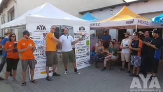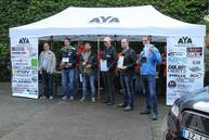 Das Team von der Car&Hifi öffnete die eigenen heiligen Hallen, wie z.B. das Heimkino und den Hörraum. Somit konnten die Teilnehmer zwischendurch dem wechselhaften Wetter entfliehen. Das Wetter war doch sehr durchwachsen (schönsprech für viel Regen und Wind) und immer wieder musste man in das AYA-Zelt oder das Redaktionsgebäude flüchten. Die Stimmung war trotzdem gut und dank dem nicht vorhandenen Feedback der Juroren wusste niemand so genau, wie er sich oder andere seiner Klasse einzuschätzen hat. Das hielt den Wettbewerb durchgehend spannend, die Siegerehrung wollte auch irgendwie nicht näher rücken.... Abends waren dann schließlich alle Wettergötter gegen uns und es wurde richtig nass, die Pokale eingeschlossen. Mit einsetzender Dunkelheit begann die Flucht in die Räumlichkeiten der Car&Hifi. Hier konnte nun endlich die Siegerehrung starten. Zunächst wurden die Teilnehmer noch ein wenig mehr auf die Folter gespannt, denn schließlich galt es erst einmal dem Gastgeber, der Car&Hifi zu danken, dass der AYA e.V. wieder zu Besuch sein darf, um das Finale auszutragen! Auch anwesende Fördermitglieder wurden für ihre Unterstützung des Vereins und der Szene mit einer Plakette geehrt. Die fleißigsten Juroren, sowie das fleißigste Mitglied des Jahres wurden ausgezeichnet.