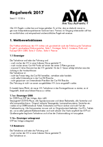 Das AYA Regelwerk entwickelt sich aus der Erfahrung bei den Wettbewerben, und wächst mit dem Anspruch, den die AYA sich zum Ziel gesetzt hat. Jede Formulierung wurde diskutiert, das Für und Wider beleuchtet, und schließlich eine Lösung abgestimmt. Das Ergebnis liegt nun vor euch, alle Änderungen zum 2016er Regelwerk sind zum besseren Auffinden rot hervorgehoben.
