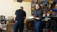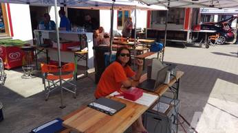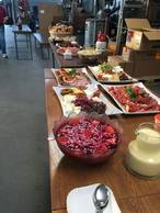 Kaffee und Getränke gibt's für einen Unkostenbeitrag, Mittags kann Pizza à la carte bestellt werden.