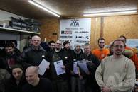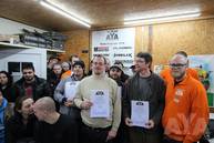 Bedingt durch bis zu 11 Teilnehmer pro Juror begann um 18.30h die Siegerehrung, alle versammelten sich in der warmen Garage und nahmen ihre Platzierungen entgegen.
